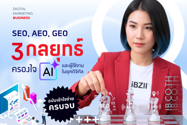 3 กลยุทธ์สำคัญในยุค AI : SEO สร้างรากฐานให้ค้นพบ, AEO เน้นตอบตรงจุดเพื่อเป็นคำตอบหลัก (Zero-Click), และ GEO สร้างความเชี่ยวชาญ (E-E-A-T) ให้ AI เชื่อถือและอ้างอิงในการสังเคราะห์คำตอบใหม่
